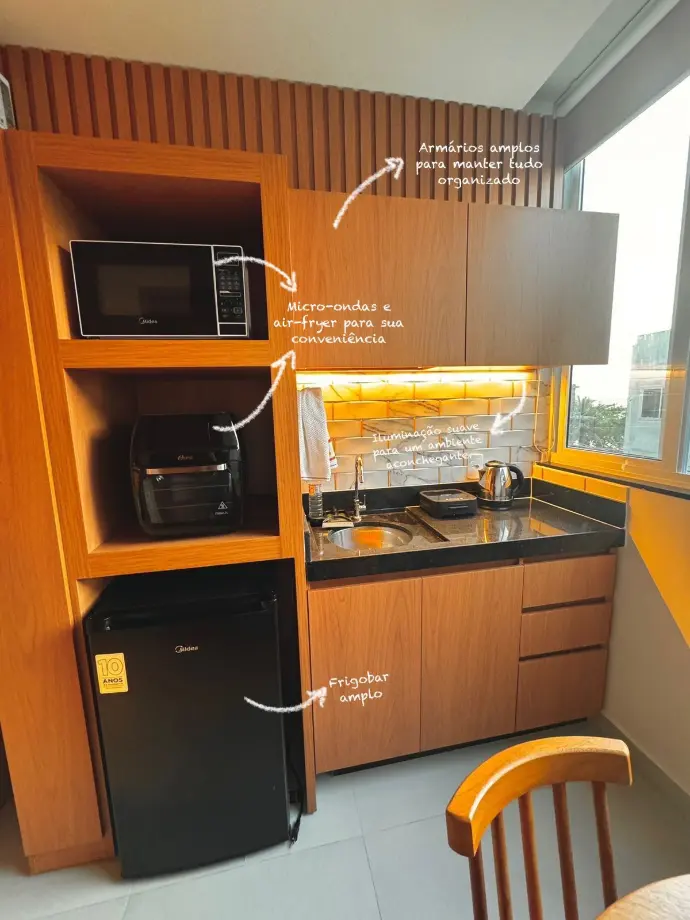 O Flat 204 é uma experiência única para quem busca uma estadia repleta de conforto, estilo e vistas de tirar o fôlego. Localizado no segundo andar do histórico Edifício Morubixaba, o flat oferece uma vista privilegiada para a Praia da Areia Preta, além de um ambiente cuidadosamente planejado para garantir momentos inesquecíveis.